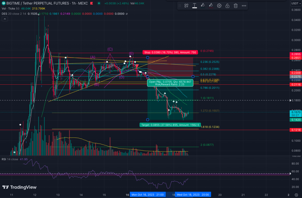 - Momentum Confirmation: Confirm that RSI is below 50, suggesting bearish momentum.